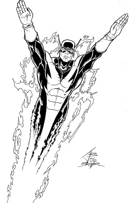 I always liked his design except for the look of the shorts he wore. Sometimes, they'd draw him with completele pants which looked A LOT better. That's also one of the reasons that I drew him in his 'bolting' form. Besides, it's more exciting anyway. I got kinda artsy-fartsy with the lightning and how the black part of the costume merges with the lightning trail. Plus, there's definite 'Flash' influence with how the bolt headgear turns into lightning and connects with the rest. Other than that, I didn't really change the design from the cartoon version. One of those characters that I've always wanted to do a nice picture of.