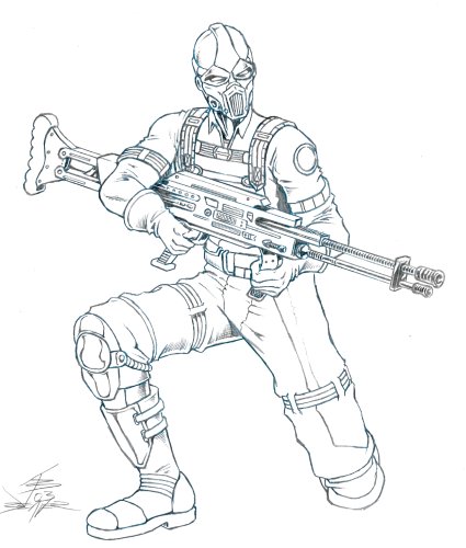 I bought some of the Joe vs. Cobra FANG helicopters off a friend of mine and decided to ask him what character he wanted me to draw. Luckily, he said a character that I happen to have a figure of, so I could get a lot of detail in. I had no idea how to have him hold that ginormous rifle he comes with, so this is the best I could do.