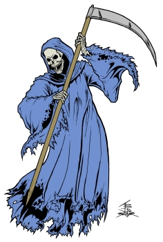 This is Death from Konami's Castlevania series in his original design. The pose is based on his sprite from the NES Castlevania games. I tried a different style of tattered clothing for the bottom of the robes to make it look like the bottom had rotted away.
