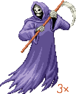 I used a shrunken version of my 2010 picture of Death to trace for the early work on this then slowly reworked it to look even more like the original sprite. The hardest part was trying to make a decent skull at such a small resolution and I think I almost did.