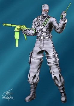 In the ultimate display of the LAZAY, Firefly doesn't even have a background here. I didn't like the way that his arms looked (this picture has digital touch ups that kinda fixed it), so I never showed it on this site... until now. People have seen a few of my G.I.JOE cutouts in photos and wondered why I didn't post them all. I didn't airbrush enough backgrounds for each character, so I stopped scanning them. Now, I'm biting the bullet and posting a few more of them. I think I'll redraw this picture in the future though, since I liked Firefly before it was 'cool' to like Firefly.