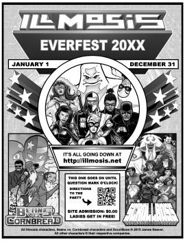 This isn't just a rush job, probably the last general Illmosis site flyer I'll make for a while. Except for last year, I always have copies left over, so I'm getting around that by making this 20XX flyer. It's basically the 2014 flyer with a few minor changes, but the ScrollBoss section has a lot of recent sprites, including a mysterious new character in the front. She'll debut in the ScrollBoss 15th anniversary update on July 19th.