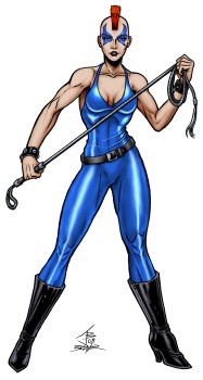 This is Linda in her outfit from Double Dragon II by Technos. Although she kept the same outfit, she went through a huge makeover from having teased blond hair to a red mohawk. While this also has the same body as the Linda pic that I posted earlier, the head is all new. I decided to make her look 100% vicious in this version. Even though I finished her D.D.1 pic first, this version is one of the main reasons that I redrew this. A friend of mine is working on a fan game where this version of Linda appears (I'll add a link as soon as I know it's okay) and I felt that my earlier drawing of Linda was too substandard for him to use. She uses the regular whip in the game and that's why she's holding it here.