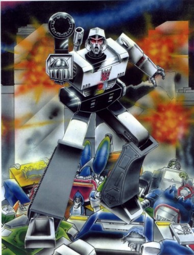 One of the strange things about this background are the deactivated robots that Megatron is standing on. Everyone pretty much assumed that they were Autobots even though NO ONE in the picture has an Autobot symbol. So what's the story behind them? Simply put, I had some weird idea about a group of Autobots sent on an earlier mission to find a planet with energon-friendly resources. They removed their symbols and just wanted to live in peace. Eventually, the Decepticons found them and the results weren't too pretty. The one female in the background is still alive and would escape to join the Autobots. Not much more to it than that. Just a background with too much back story. Anyway, the point is that Megatron shouldn't be messed with and I think that comes across here.