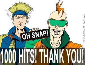 I always forget to celebrate site hit milestones because I'm still not used to having hit counters again. I missed most of 'em on Illmosis, so I had to celebrate ScrollBoss' 1000 hit. It's a parody of the net-famous 'Oh Snap' animation, but with Two.P and J. 'Who are Two.P and J?' you ask? Only two of my favorite 'drone' characters (enemies that appear frequently in a game, but aren't level bosses or anything) from Final Fight. 'What's Final Fight?' It's a game from the late 80's where you walk around and beat the crap out of bad people like you do in Double Dragon. Go check out the Capcom Classics Collection for some real Two.P and J action.