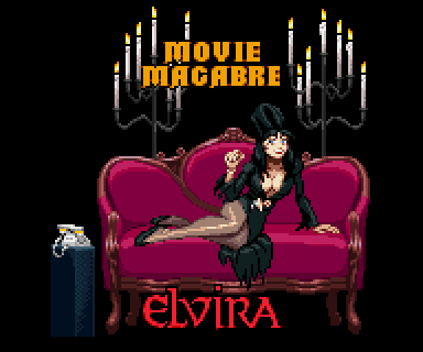 After making an all-new Elvira sprite with a slightly different style for my 2018 fake 3 vs. 3 horror game screen, I used that same style to make a new sprite of her sitting on the classic Movie Macabre couch and other parts of the set in 2021. I even animated it in my 2021 DangerTerrorHorrorThon video. Still need to redo her other sprites to fit this style
