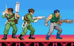 Arcade stand (2012) & NES stand (2013): Though I'm not a fan of the arcade version, I still wanted to have that version of the Bionic Commando to be part of a 1987-themed ScrollBoss update. I used the legs as a starting point for the NES standing sprite I made less than a month later. The NES pose was one of the first fighting-scale sprites I'd ever tried to make from scratch back around 2001 or so and the results looked like crap. This one turned out much better.