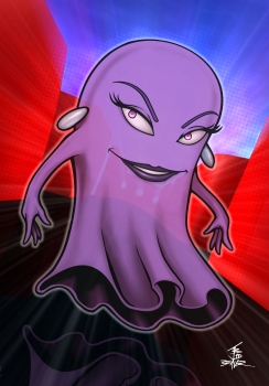 I need a pic of Sue for a ScrollBoss article I've been working on so here it is. I drew one version in the same week that I drew Ms. Pac-Man but I wasn't happy with it. I made another attempt later that looks a lot more like her Ruby-Spears character design. I like this one better because she's borderline creepy here. Sue also benefits from line cleaning courtesy of Inkscape just like the Ms. Pac pic. It's better to practice with simple pictures like this before I even try it on my usual drawing style.
