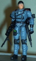 Info: This figure recreates one of my favorite G.I. Joe characters. He's a soldier of the night with excellent sniper skills. In the cartoon, he had a pretty screwed-up childhood. He was afraid of the dark and his father REALLY didn't like this. So, at the dead of night, he sent his little boy into the woods and told him not to come back until he had killed 20 rats. He achieved this, but he's been a little bit spooky ever since. This is his original outfit and it seems as if every other version of this figure that came after the repaint of the original (in "Sgt. Slaughter's Marauders" colors) looked nothing like him (some even sporting the wrong hair color). So I took the law into my own hands and made my own rendition. The best part is that the arms have rotating hands so he can hold his sniper's rifle correctly. I didn't finish touching up the paint on the removable goggles because I thought that they looked too big, but others have told me that they look fine. I might finish them up and put them back on.