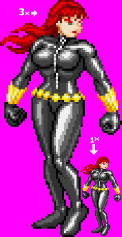 Now this was just weird. I'm working on a graphic generator that makes fake Versus video game screens. I wanted to replace the old Black Widow sprite edit I was using with another edit based on that Randy Bowen statue from a few years back. But for some reason, I figured I could just try making one from stratch. Much to my surprise, this one turned out like a Capcom sprite. I had to look at Rogue and Psylocke sprites to get the look of the face, the right proportions and all that good stuff. It's not perfect, but it's nice to finally get a sprite looking more like something from Capcom.