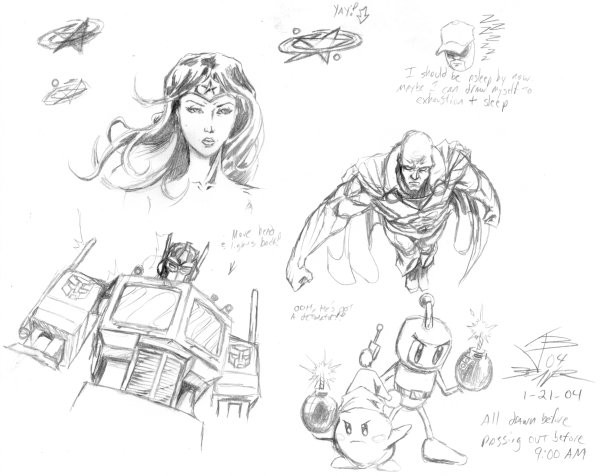 Doodle page: January 21st 2004 (DC, Transformers, Kirby and Bomberman) - 2004