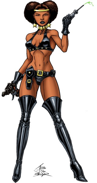 I dug into the obscure archives for this one. She's a villainess that debuted in Captain America but kept popping up for a while in other places, including a Power Man & Iron Fist's comic. She's a scientist that's infamous for screwing around with DNA and even cybernetics. She's also infamous for being behind the plot in the 'Capwolf' storyline (a continuation of her werewolf experiments from her debut issue). She was also lead scientist in Superia's army during the great Gruenwald Cap run in the 90's. Those are the issues that made me a bit of a Nightshade fan, but this pic has her in the outfit she debuted in instead of the catsuit with the thousands of spikes. If I ever get around to doing 'character redesigns', I'd like to hook Nightshade here up with one. I drew this back in Feb. but was never really satisfied with the face. I drew a new one in October, pasted it to the old version and feel a bit better about it now. After getting the PC back in better shape, colored it two months after that. Now I really like how it turned out, and that's rare for me.