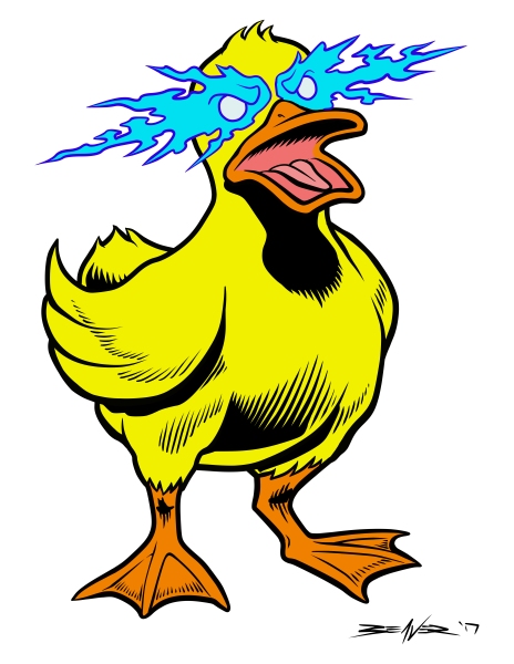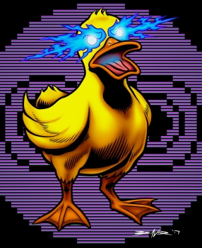 The main idea for Endless Duck was going to be an article in the Minus World section of ScrollBoss years ago, around the time that I drew the Silver Surfer pic. The problem was that I could never draw a design that looked right... until last year. I sketched this out in late 2016 and planned to ink it in Clip Studio Pro once I'd warmed back up to using it, but pixel art commissions put that on the back burner until June 2017. It's as if reality itself knew that Endless Duck shouldn't exist and tried to stop me. We'll find out later if reality was right to try...