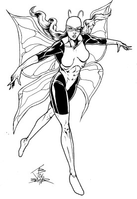 A: I picked up my 'Essential Marvel Universe Handbook vol.1' and put my finger between two random pages. One page had a guy in a suit and the other had an attractive woman in a skintight costume and freaky moth wings. The choice was clear.
