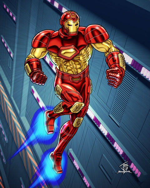This is Iron Man in his "Modular Armor," the same armor seen in the 1990's Iron Man cartoon, toy line and Capcom video games. Iron Man was inked in Clip Studio and colored in Paint Shop Pro, while the background was made from scratch in Blender. I'd never drawn this much solid shading and lighting in Clip Studio before (still got that mental disconnect drawing on a non-monitor tablet), but I like how it turned out. Still need to make some adjustments, though.