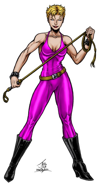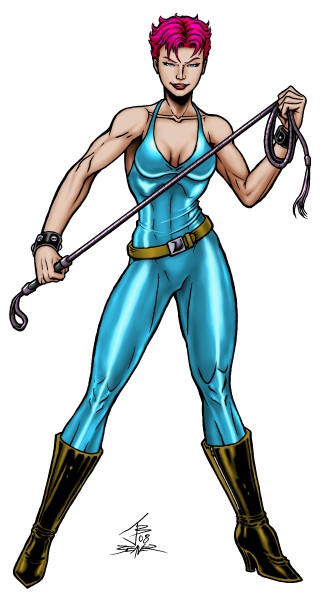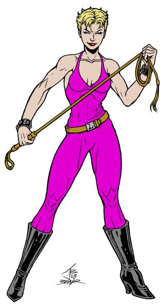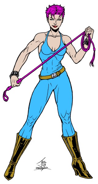 This is Linda, a villainous character from Technos' highly-influential video game classic, Double Dragon. She's the prototype of the video game bad girl with her high-heeled boots and trademark whip. My attempt to draw her a few years back failed because too much my cartoony "cutie" style crept in and mangled things. I drew her again because I'll need artwork of her for various projects on ScrollBoss. Also, a friend of mine needs a variation of this because I don't think the old Linda pic is good enough for his project.