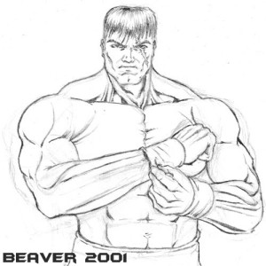 Pretty boring. Even if I had continued with this and fixed the proportions, he still would've came off a bit too 'Hulk-like' for what I was going for. A friend of mine named MugenMage had converted Max into MUGEN and I was going offer the finished product as a possible character portrait (those pics that show up in a fighting game where it's 'character 1' 'vs. character 2'), but this didn't turn out so well.