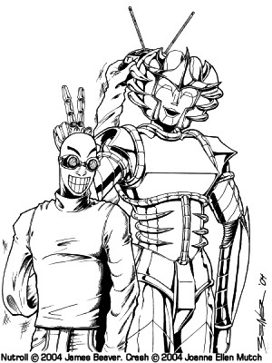 One of my favorite things about hitting the conventions is meeting all the cool, creative and inspirational independant comic people there. I buy more of their stuff than the mainsteam comics when I go. Joanne Ellen Mutch is a creator that I met on my first con trip and always someone that I try to find everytime I go. Her book Rummblestrips is about a woman nicknamed Rummble and her alien friend Crash. No, Crash is NOT a robot, but a metallic being. If you make the mistake of calling her a robot, well, she'll make sure that you remember not to do that again.