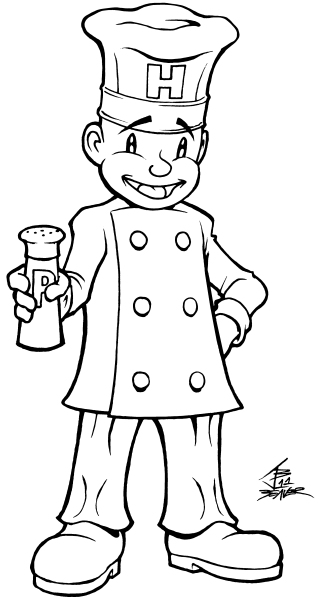 This is Peter Pepper, the hero of Data East's classic video game, BurgerTime. I drew this in the cartoony style I've been working with lately and used the in-game sprite and chef gear photo reference for inspiration instead of basing it on any official artwork. Nothing against the fine official art from the original game but I wanted to try my own thing in this case. He's bald because his sprite is bald and I chalk it up to his being so dedicated to the art of sandwich making that he shaves to ensure that a stray hair will never be in one of his food creations. Yes, seriously. The pepper shaker is green because that's the color that your "pepper" count is in the game. I don't remember if the H on his chef's toque means something or is just there instead of an asymmetrical P that would be backwards if the sprite were horizontally flipped so I kept the H.