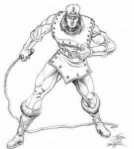 Done in all pencil, this is actually a redrawn version of an even crappier picture of the Castlevania series' first vampire killer. In case you're wondering, yes, he's holding a small bottle of Holy Water, the favorite side-weapon of many Castlevania fans. Seriously, when you need to jump down to a floor that's filled with monsters, drop a lil' holy water down there to clear the dance floor. Like Colt 45, it works every time. This is another one of those pictures I'd like to draw again but add a lot more life to.