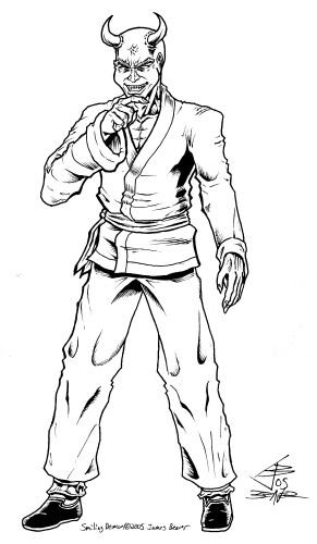 Even before my character Twofold made the transition from 'displaced ninja fighting criminals in America for no apparent reason at all' to 'Martial Arts hero', Smiling Demon was his enemy. He goes as far back as Passion Tanaka does to around 1990 or so. He always looked like this for the most part, except for the mark on his head and his new Chinese heritage and clothing. Still, I tried to stay close to the Karate gi that I had him in for over ten years.