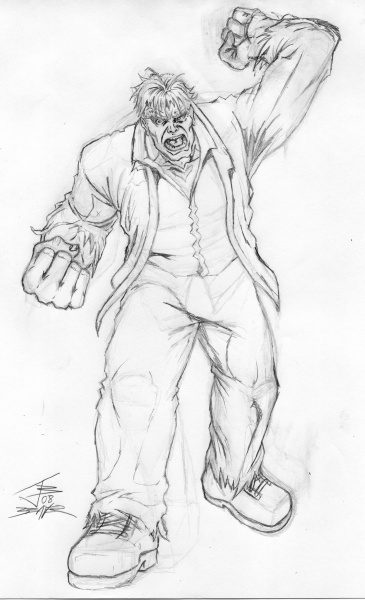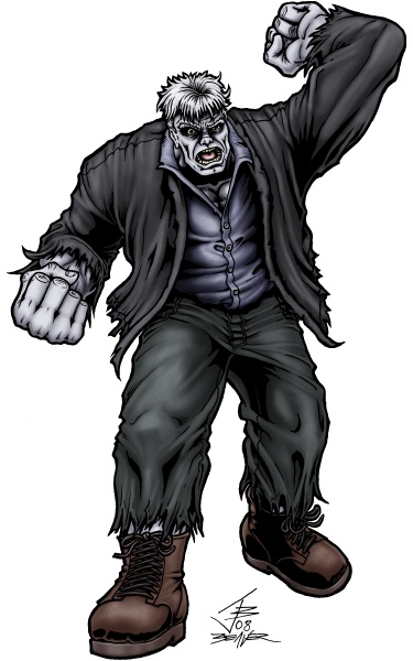 Pic 3 of 'Creature Iller Horror Theatre 2008 features Slaughter Swamp's favorite son, Solomon Grundy. While I made a small sketch of it two nights before drawing this, I sketched a different version full size while waiting in a friend's car. David Emge's zombie walk inspired Grundy's nearly clumsy walk here.