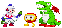 I made the Pooka sprite in early 2012 as part of an old-school update for ScrollBoss. Dig Dug and Fygar were made in late 2012 for the second old-school update. Pooka and Dig Dug were made to look much like the original artwork, especially Dig Dug. Fygar's art looks so different from the in-game sprites that I took a shot at merging both the sprite and art designs. It took a lot of adjusting, but I hope its good enough so that Dig Dug fans can tell it's Fygar without being told.