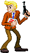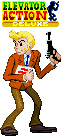 This scratch-made sprite is based on style from Elevator Action Deluxe. The first sprite with the folder is in the same pose as the more serious agent on the NES version's cover. The pistol is based on in-game logo for the original Elevator Action. This sprite goes over the "16 color limit" to make recoloring them easier in the Image Generators on ScrollBoss. I'll try to get around to spriting the female agent at some point but I'd like to get the game before I do anything else based on this.