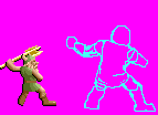 I started working on Gilius' Golden Axe 1 fighting stance pose in November hoping he'd be ready for ScrollBoss' "The Revenge of 1989" theme month. It took a few more tries to get him right and some helpful suggestions by vnartist about the left arm led to the best improvements. There's a progress animation below with the last step being based on vnartist's critique. The 'magic' pose was a resize/trace/redraw sprite done for the ScrollBoss 10th Anniversary in 2010 and the basic pose was traced over a resized sprite from the old game. I made the Gilius sprite and an edit of Ax-Battler's magic pose to match an earlier Tyris magic pose sprite edit so all three heroes could stand in the front of a big sprite group picture I made for the July 19th update. I had to do it because the Golden Axe heroes were on the first ever ScrollBoss banner in 2001.