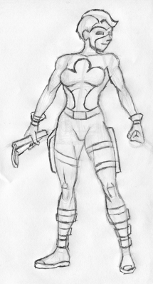 The Ace of Clubs: the calm standing sprite was done Nov. 2014. I had to make her pose look a bit more dynamic once I got the pixel art started. I'm not 100% sold on how she looks here, so I'll try to improve her sprite design in the action poses.