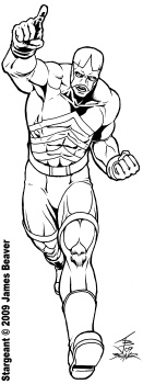 This is another character of mine who appeared in the 'earlier age' of my main comic book universe. The Stargent is a patriotic hero who is rough around the edges but still a pretty good guy that you can depend on. He was considered one of the top heroes in the world before... well, that's a story for another time. He will appear in quite a few flashbacks in upcoming stories.