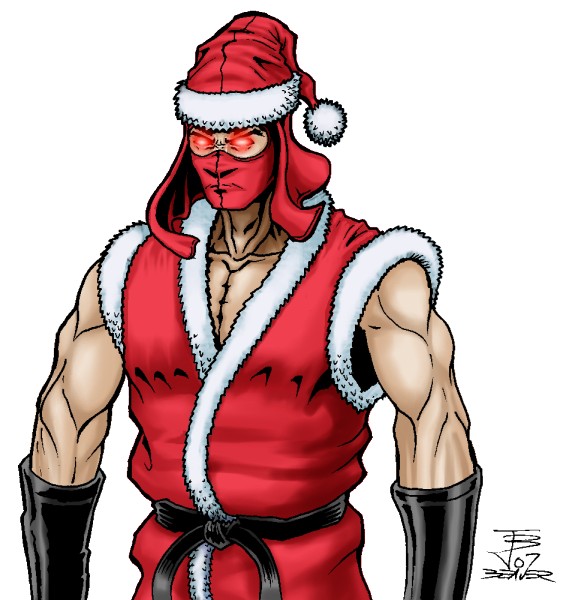 This is new for most to most of you people but I used to draw this all the time since the 90's. Kenji begrudgingly wears this costume to the delight for his half-dozen (or less) fans. He loves you this much and wants you all to have a Merry Christmas and a joyous holiday season. Oh, wait, that's what me. Kenji just wants to get back into his regular outfit and knock me upside the head for drawing him like that. He does love you people, though.