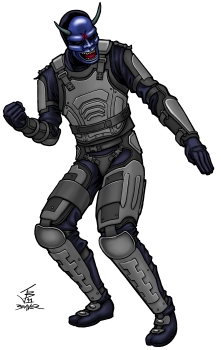 This is the second commission pic I've drawn for XuhanShi featuring this chararacter. This is the first time I've ever drawn this kind of riot gear, so I really appreciate the fact that XuhanShi sent some big reference pictures. He's a ninja, so you know I had fun drawing it. XuhanShi has a deviantART account with more pics of this character.