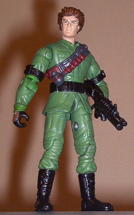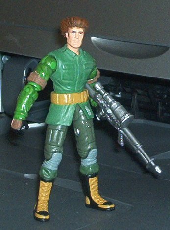 One of the top two video game characters that I've always wanted to make in G.I.JOE figure form. For those who don't know, Radd is from the NES version of Capcom's Bionic Commando where he wore green fatigues. Plus, the gameplay was much better in the NES version. Not finished until I find or make glasses that will stay on head and a hanging version of the grapple arm.