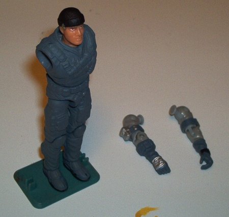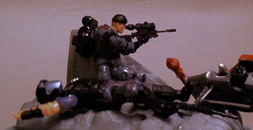 Info: This figure recreates one of my favorite G.I. Joe characters. He's a soldier of the night with excellent sniper skills. In the cartoon, he had a pretty screwed-up childhood. He was afraid of the dark and his father REALLY didn't like this. So, at the dead of night, he sent his little boy into the woods and told him not to come back until he had killed 20 rats. He achieved this, but he's been a little bit spooky ever since. This is his original outfit and it seems as if every other version of this figure that came after the repaint of the original (in "Sgt. Slaughter's Marauders" colors) looked nothing like him (some even sporting the wrong hair color). So I took the law into my own hands and made my own rendition. The best part is that the arms have rotating hands so he can hold his sniper's rifle correctly. I didn't finish touching up the paint on the removable goggles because I thought that they looked too big, but others have told me that they look fine. I might finish them up and put them back on.