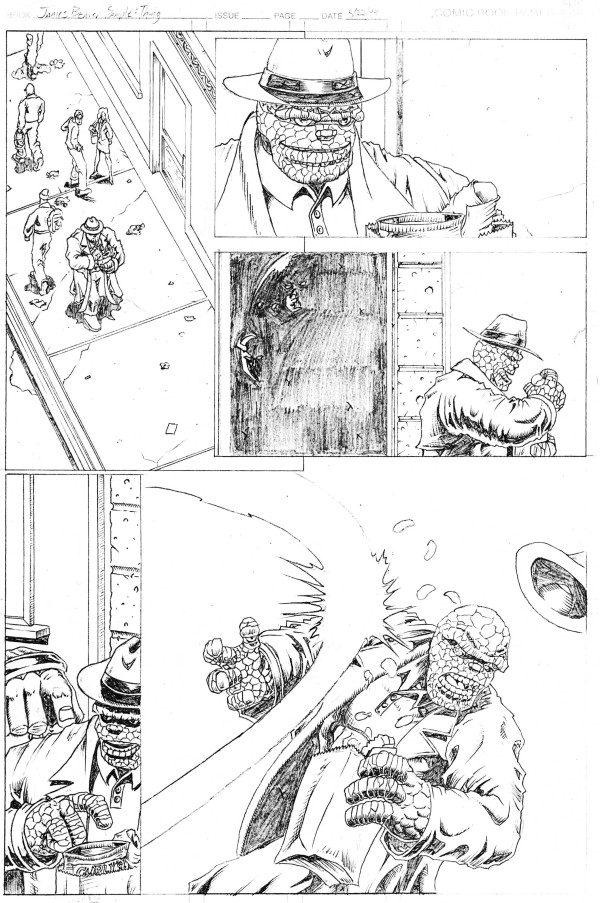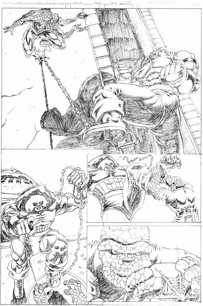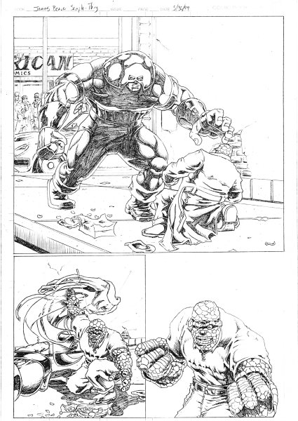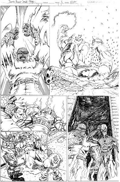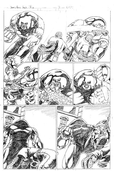 Sequential Artwork I don't have much sequential artwork that doesn't have my own character running through it, so there's not much here. So this was supposed to be my demonstration that I could do sequential work that DIDN'T have my characters in it. I put the Thing in there because he was fun to draw and he was one of those characters that people almost constantly screwed-up. People always ask me why "mystery bad guy" does what he does at the end. The truth is that this was supposed to go on for a few more pages. Look at the third panel on page 1. If you look closely in the darkened alley, there's more than one person hiding in there. **Insert ominous orchestra strike HERE** the Transformers (2000) pages: 1 Tekken: Marshall Law vs Baek Doo San (????) 1 This was done as a sample sent to a company that was working on a Tekken comic. I tried to have the two characters fighting the way that they do in Tekken 2 including Law's often-abused Flip Kick. When I didn't hear back from the company, I took it as a sign that I sucked. Later, I heard the company was going through trouble and no longer had the Tekken book and that someone else had the license. All of the characters on this page are property of their respective owners. |