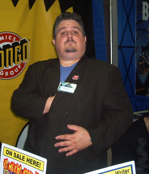 'Tis the maestro, Chris Yambar! A looooooooooooooooooong time ago, I did some art and coloring for a book that he and artist/friend Gary Smith did called Substance Comics. Nowadays, he writes comics for Bongo Comics (the comic home for the Simpsons, Radioactive Man, Futurama and Roswell) as well as his creations Mr. Beat and the Fire Breathing Pope. Yes, he's a talented madman. Wish he had a site so you could see his Mr. Beat stuff... |